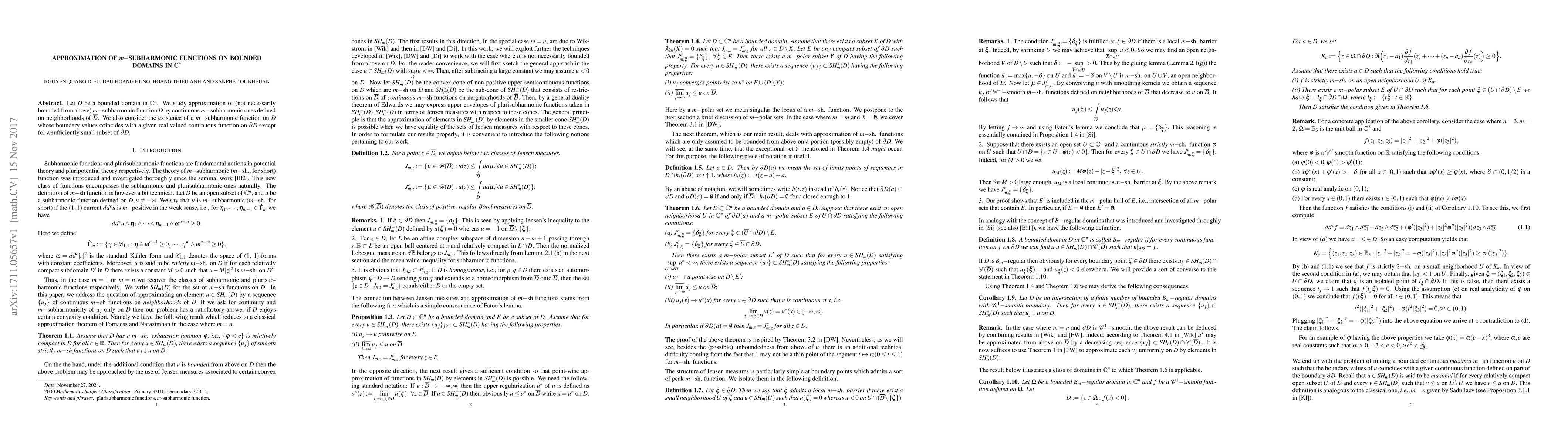 Let $D$ be a bounded domain in $\mathbb C^n$. We study approximation of (not necessarily bounded from above) $m-$subharmonic function $D$ by continuous $m-$subharmonic ones defined on neighborhoods of $\overline{D}$. We also consider the existence of a $m-$subharmonic function on $D$ whose boundary values coincides with a given real valued continuous function on $\partial D$ except for a sufficiently small subset of $\partial D.$
