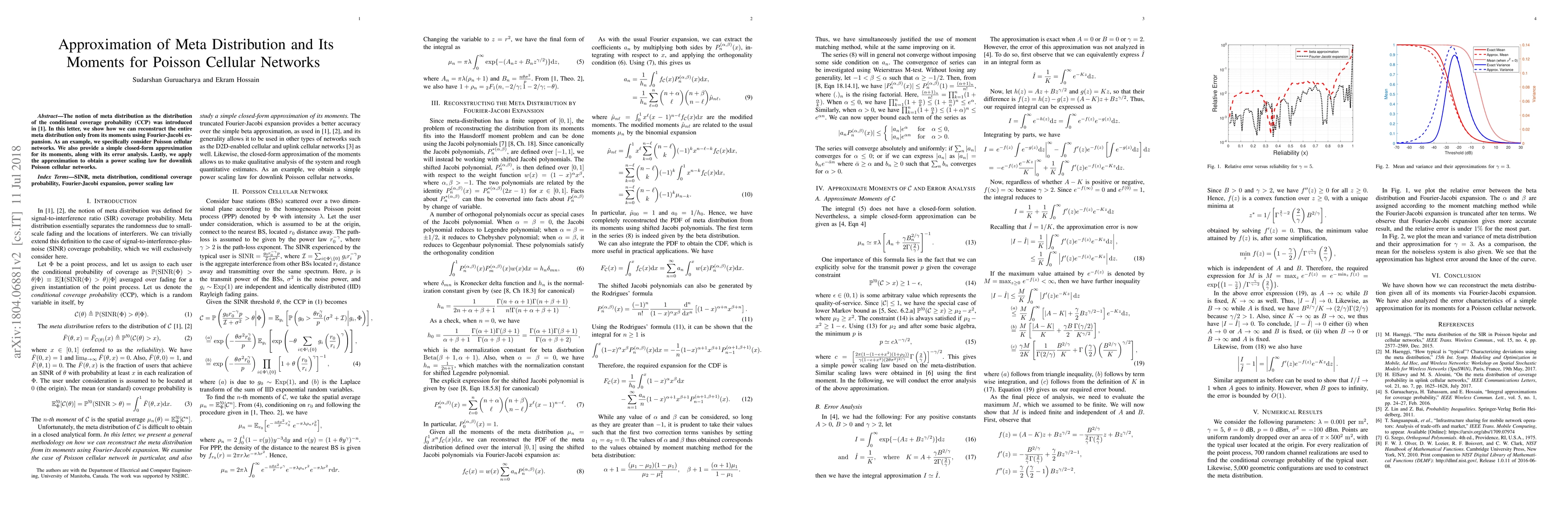This paper reconstructs the meta distribution of Poisson cellular networks using Fourier-Jacobi expansion based on its moments, providing a closed-form approximation for these moments and analyzing the error. The method is applied to derive a power scaling law for downlink performance.