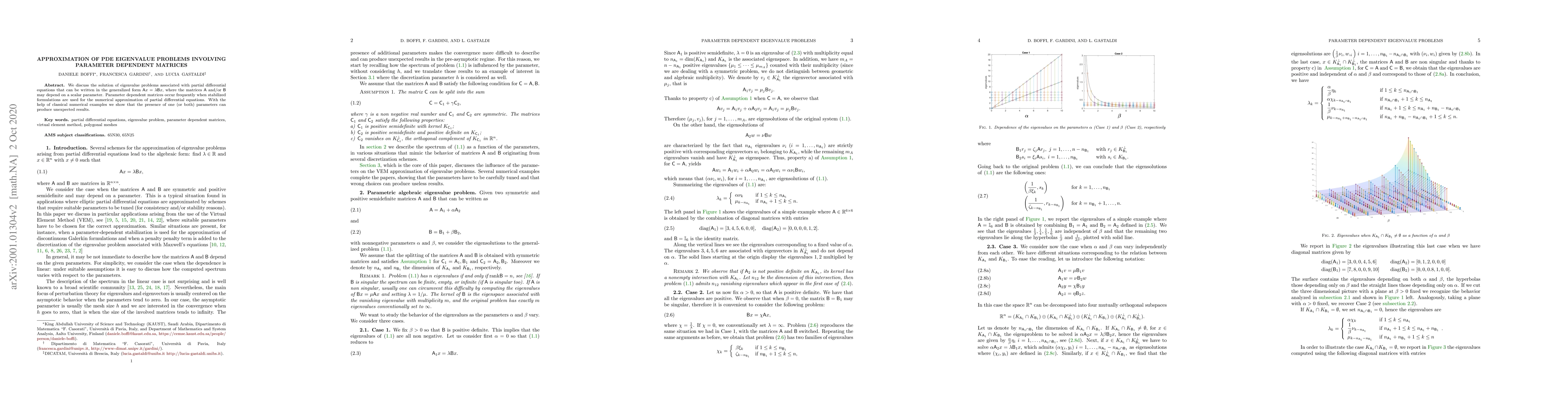 We discuss the solution of eigenvalue problems associated with partial differential equations that can be written in the generalized form $\m{A}x=\lambda\m{B}x$, where the matrices $\m{A}$ and/or $\m{B}$ may depend on a scalar parameter. Parameter dependent matrices occur frequently when stabilized formulations are used for the numerical approximation of partial differential equations. With the help of classical numerical examples we show that the presence of one (or both) parameters can produce unexpected results.
