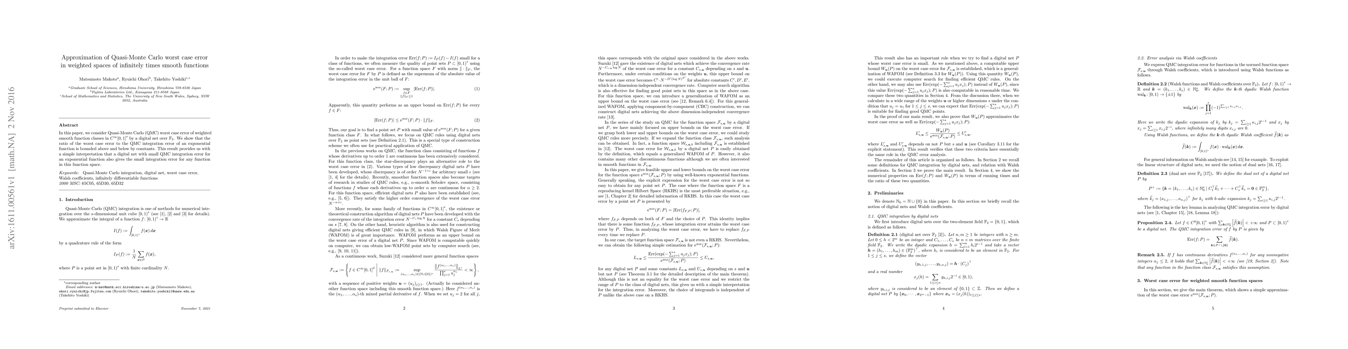 This paper establishes bounds for Quasi-Monte Carlo (QMC) worst case error in weighted smooth function classes, showing that small QMC integration errors can imply small overall errors for any function within the class.