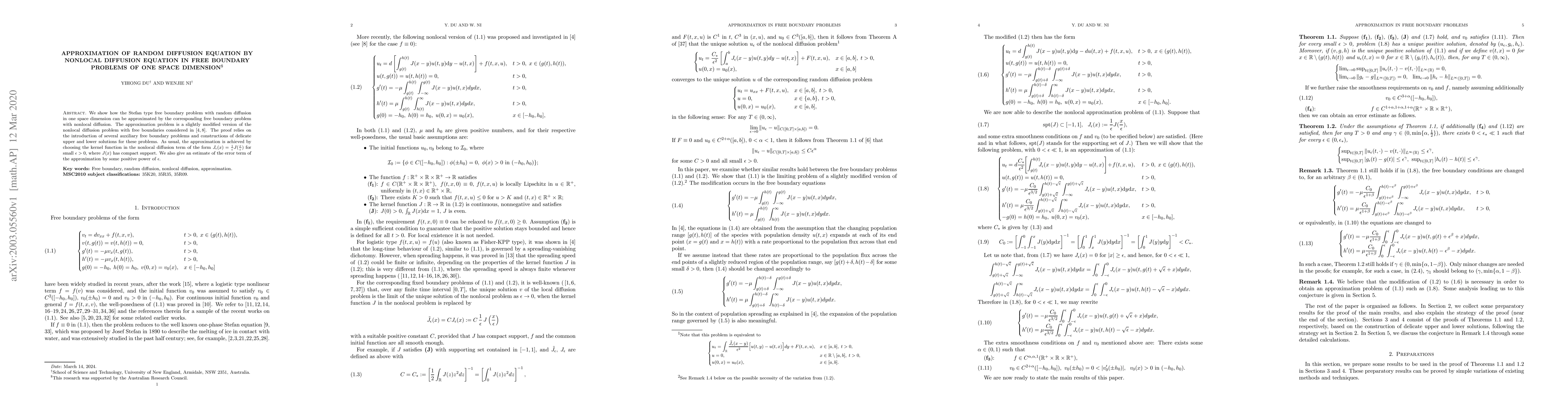 This paper demonstrates the approximation of a Stefan type free boundary problem with random diffusion in one dimension by a nonlocal diffusion problem. The approximation is achieved using a kernel function and involves constructing upper and lower solutions, with an error term estimate provided as a positive power of the small parameter $\epsilon$.