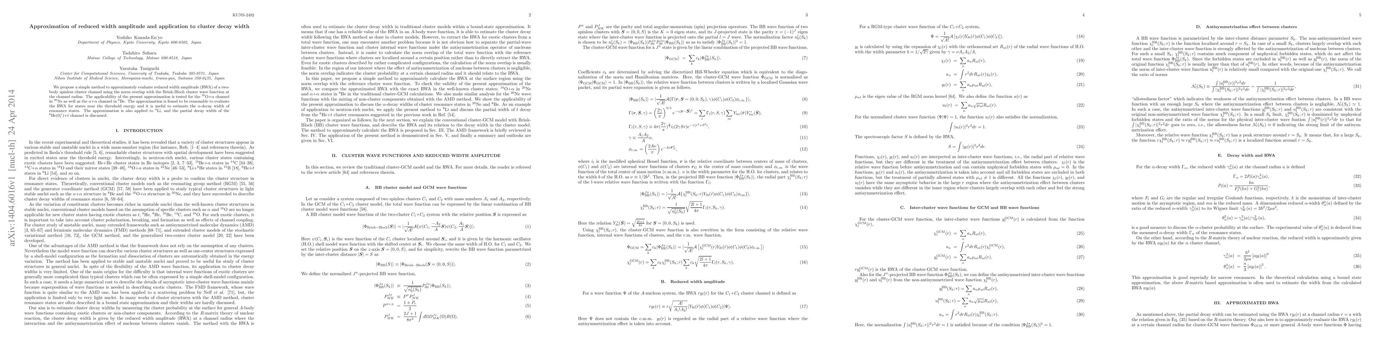 Researchers propose an approximation method for estimating reduced width amplitude in two-body cluster channels, which is found to be reasonable near threshold energies and useful for estimating decay widths.