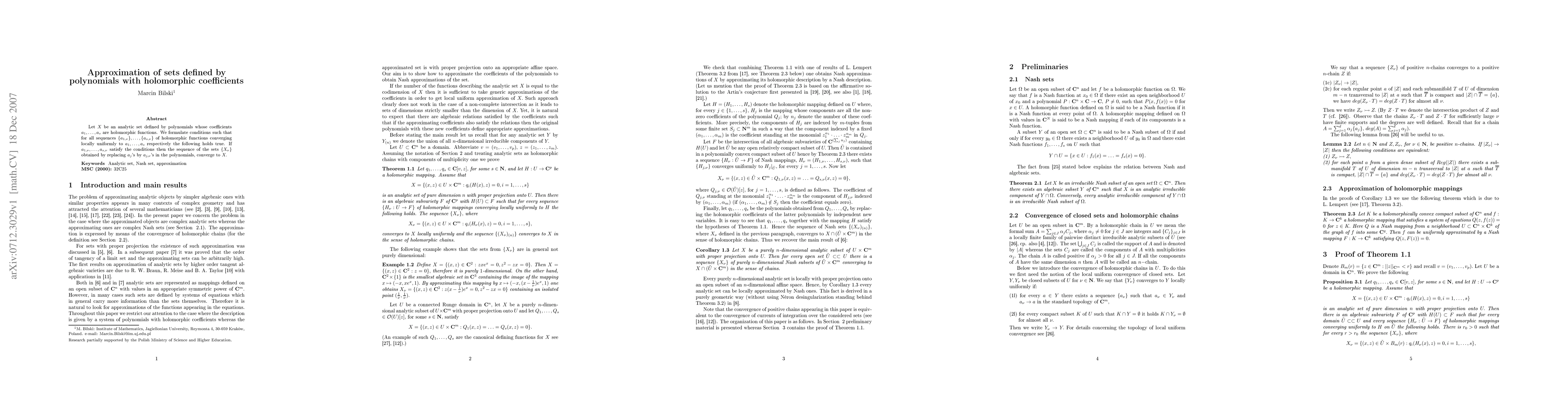 This research paper explores how replacing polynomials with locally uniformly convergent sequences of holomorphic functions results in sets that converge to the original set defined by the polynomials.