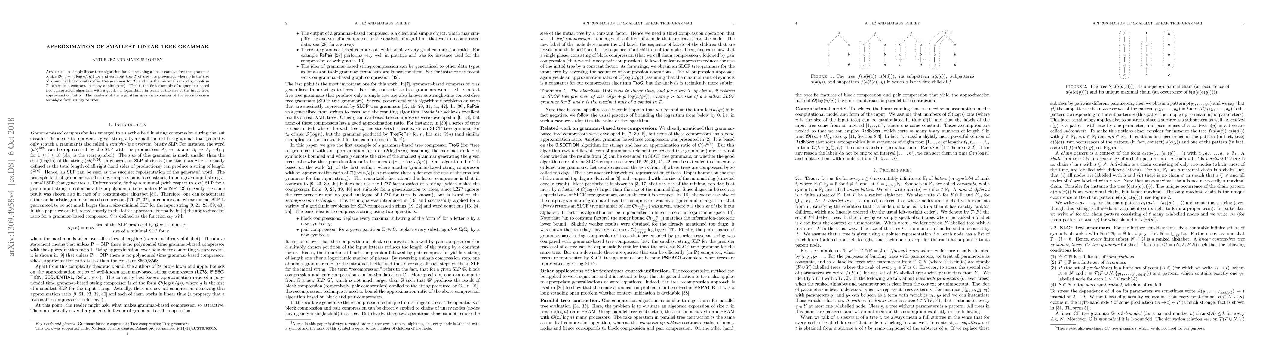 A simple linear-time algorithm for constructing a linear context-free tree grammar of size O(rg + r g log (n/r g))for a given input tree T of size n is presented, where g is the size of a minimal linear context-free tree grammar for T, and r is the maximal rank of symbols in T (which is a constant in many applications). This is the first example of a grammar-based tree compression algorithm with a good, i.e. logarithmic in terms of the size of the input tree, approximation ratio. The analysis of the algorithm uses an extension of the recompression technique from strings to trees.
