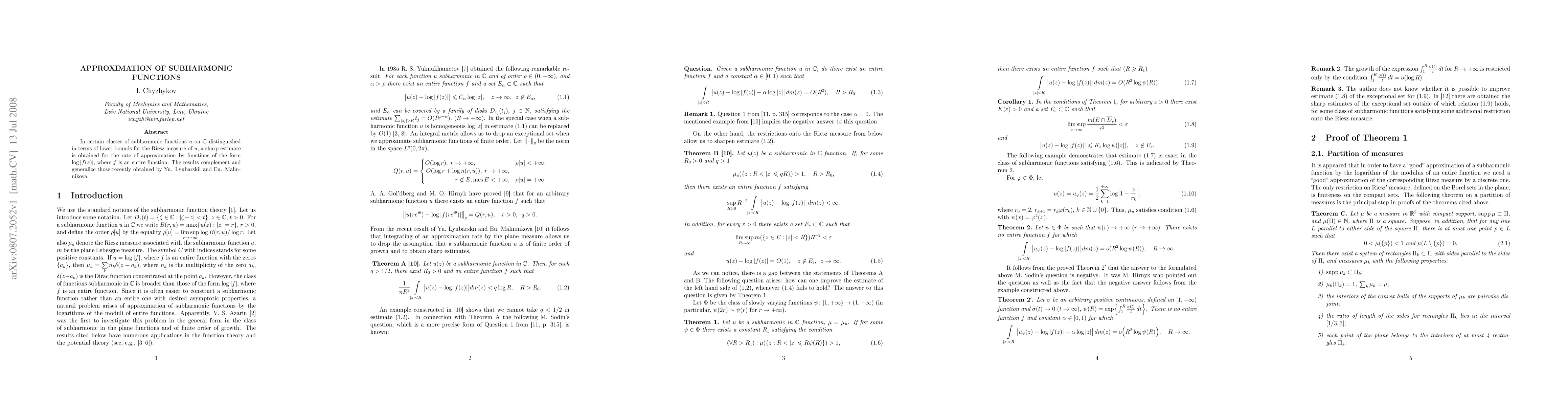 This paper provides a sharp estimate for the rate of approximation of specific subharmonic functions by logarithmic functions of entire functions, enhancing and extending the recent findings of Yu. Lyubarskii and Eu. Malinnikova.