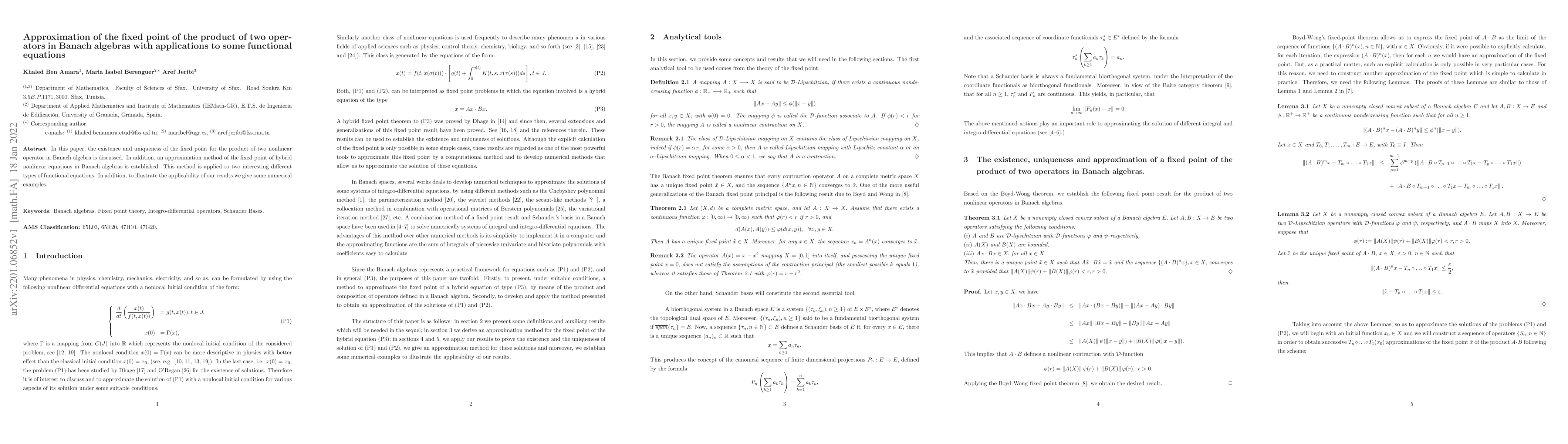 In this paper, the existence and uniqueness of the fixed point for the product of two nonlinear operator in Banach algebra is discussed. In addition, an approximation method of the fixed point of hybrid nonlinear equations in Banach algebras is established. This method is applied to two interesting different types of functional equations. In addition, to illustrate the applicability of our results we give some numerical examples.