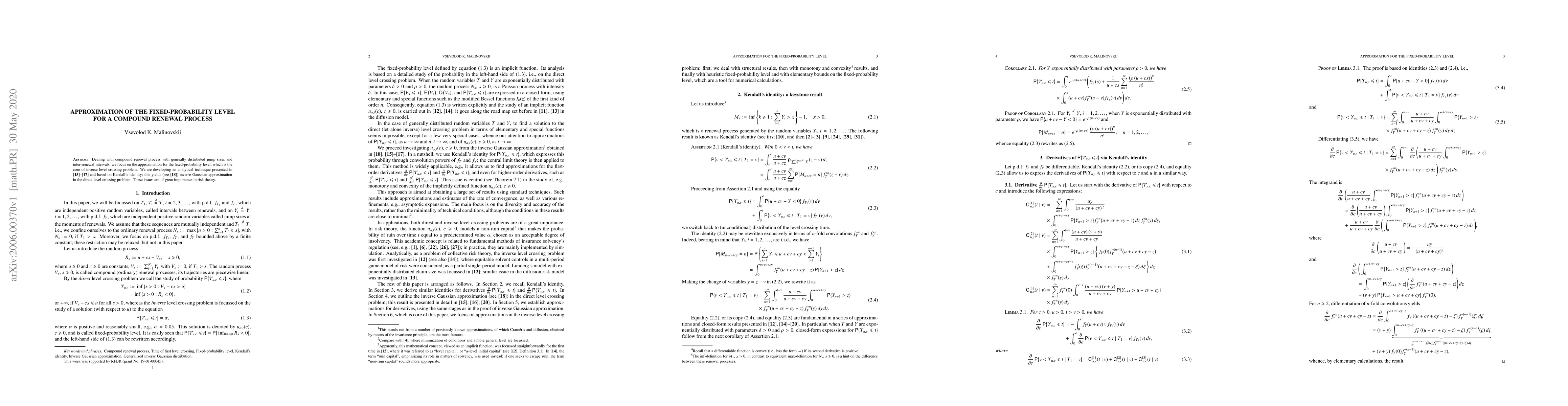 Researchers developed an analytical technique to approximate the fixed-probability level for compound renewal processes with generally distributed jump sizes and inter-renewal intervals, which is crucial in risk theory.