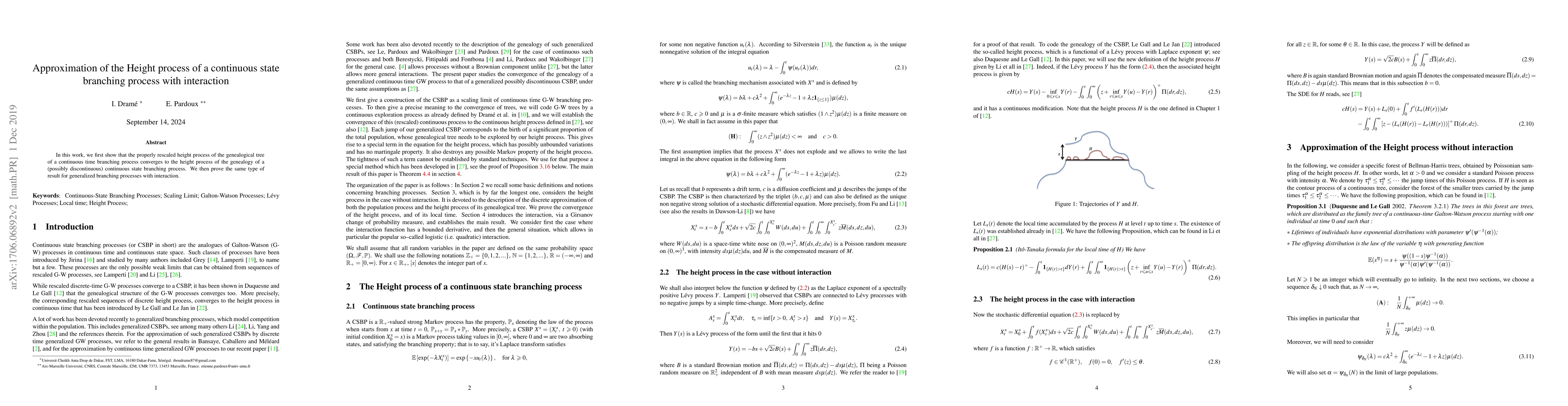 Summary: This paper demonstrates the convergence of the rescaled height process of a continuous time branching process to that of a continuous state branching process, and extends this result to generalized branching processes with interaction.