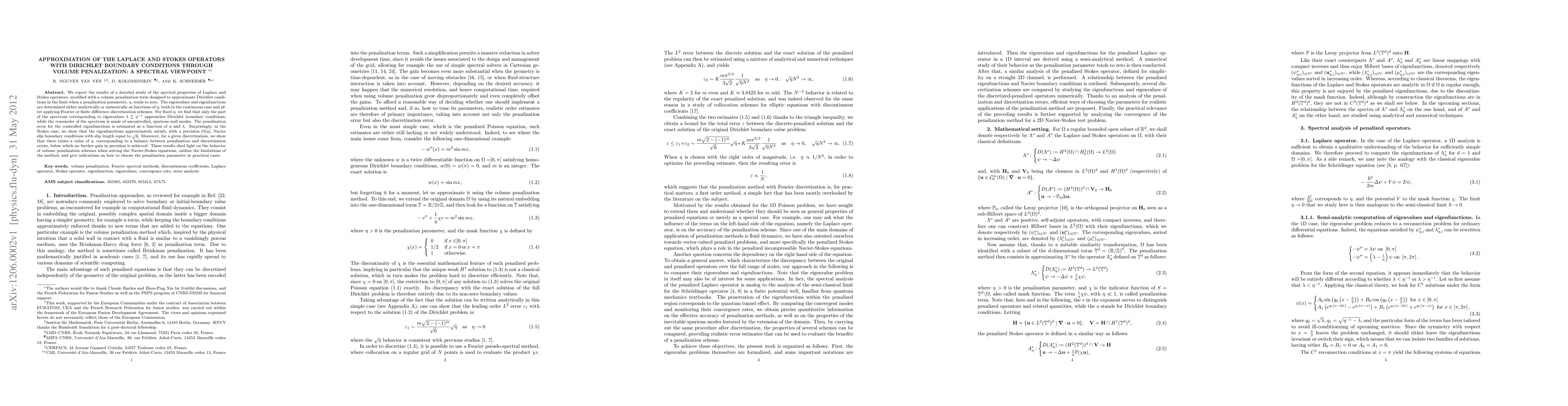 We report the results of a detailed study of the spectral properties of Laplace and Stokes operators, modified with a volume penalization term designed to approximate Dirichlet conditions in the limit when a penalization parameter, $\eta$, tends to zero. The eigenvalues and eigenfunctions are determined either analytically or numerically as functions of $\eta$, both in the continuous case and after applying Fourier or finite difference discretization schemes. For fixed $\eta$, we find that only the part of the spectrum corresponding to eigenvalues $\lambda \lesssim \eta^{-1}$ approaches Dirichlet boundary conditions, while the remainder of the spectrum is made of uncontrolled, spurious wall modes. The penalization error for the controlled eigenfunctions is estimated as a function of $\eta$ and $\lambda$. Surprisingly, in the Stokes case, we show that the eigenfunctions approximately satisfy, with a precision $O(\eta)$, Navier slip boundary conditions with slip length equal to $\sqrt{\eta}$. Moreover, for a given discretization, we show that there exists a value of $\eta$, corresponding to a balance between penalization and discretization errors, below which no further gain in precision is achieved. These results shed light on the behavior of volume penalization schemes when solving the Navier-Stokes equations, outline the limitations of the method, and give indications on how to choose the penalization parameter in practical cases.
