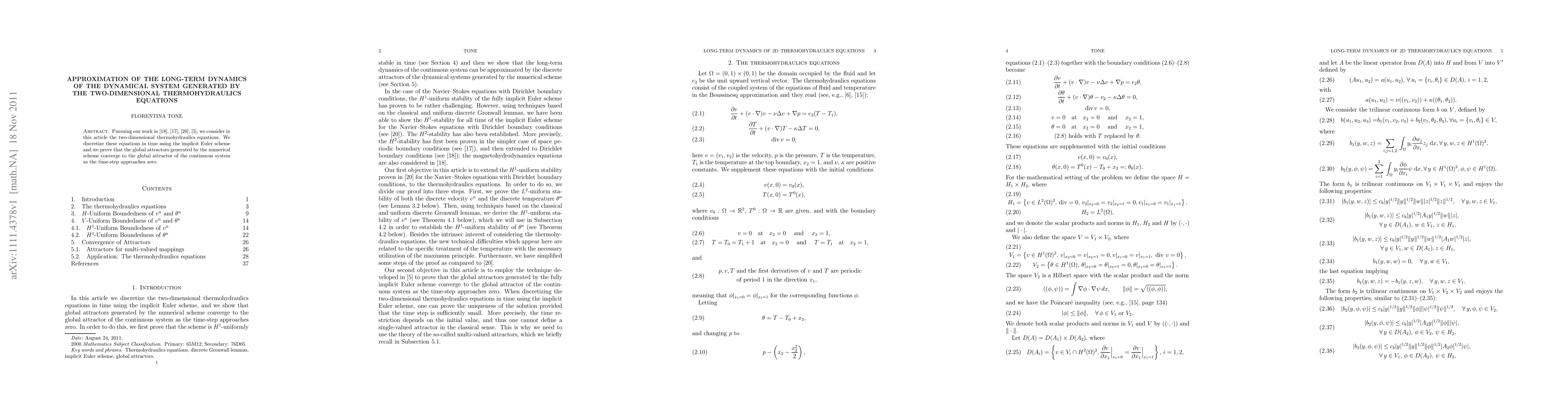 Pursuing our work in [18], [17], [20], [5], we consider in this article the two-dimensional thermohydraulics equations. We discretize these equations in time using the implicit Euler scheme and we prove that the global attractors generated by the numerical scheme converge to the global attractor of the continuous system as the time-step approaches zero.
