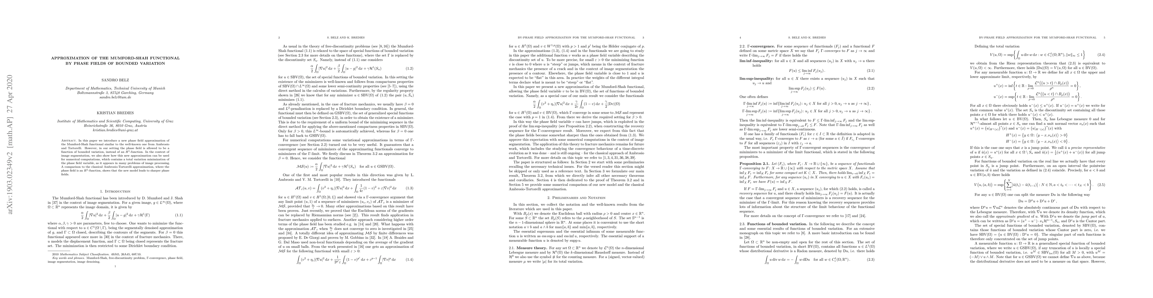 In this paper we introduce a new phase field approximation of the Mumford-Shah functional similar to the well-known one from Ambrosio and Tortorelli. However, in our setting the phase field is allowed to be a function of bounded variation, instead of an $H^1$-function. In the context of image segmentation, we also show how this new approximation can be used for numerical computations, which contains a total variation minimization of the phase field variable, as it appears in many problems of image processing. A comparison to the classical Ambrosio-Tortorelli approximation, where the phase field is an $H^1$-function, shows that the new model leads to sharper phase fields.