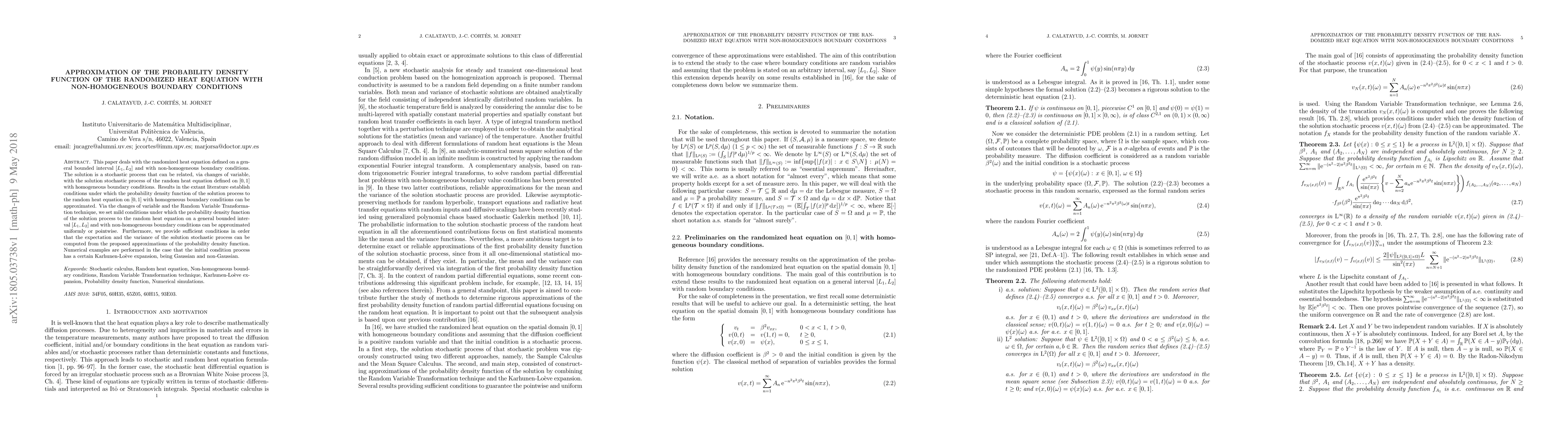This paper approximates the probability density function of the randomized heat equation on a general interval with non-homogeneous boundary conditions using variable transformations and Random Variable Transformation techniques. It provides conditions for uniform or pointwise approximation and sufficient conditions for computing the expectation and variance of the solution process.