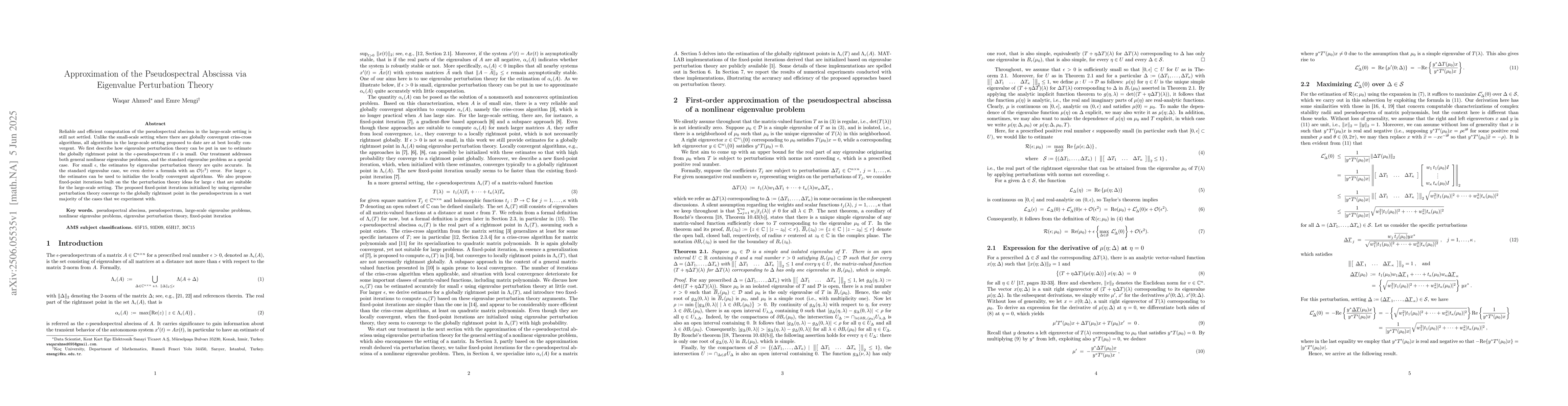The paper presents novel fixed-point iteration methods for approximating the pseudospectral abscissa, leveraging eigenvalue perturbation theory and providing first- and second-order approximation formulas for improved accuracy.