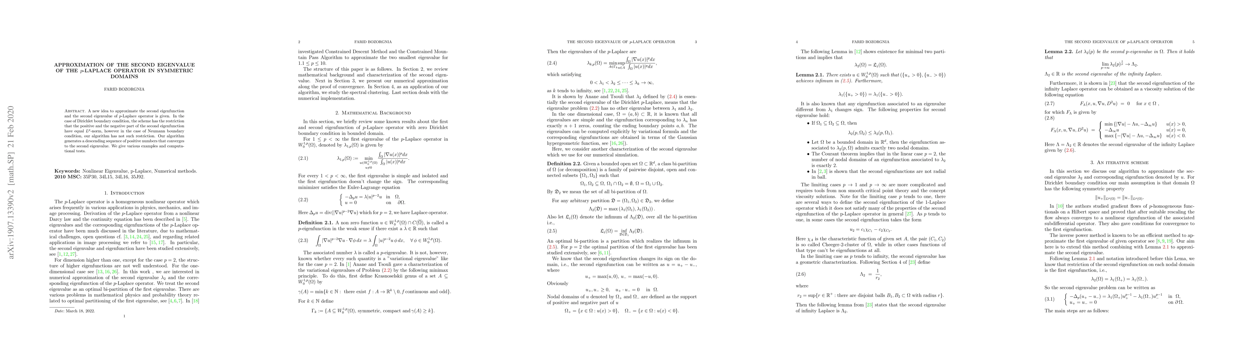A new idea to approximate the second eigenfunction and the second eigenvalue of $p$-Laplace operator is given. In the case of the Dirichlet boundary condition, the scheme has the restriction that the positive and the negative part of the second eigenfunction have equal $L^p$-norm, however, in the case of Neumann boundary condition, our algorithm has not such restriction. Our algorithm generates a descending sequence of positive numbers that converges to the second eigenvalue. We give various examples and computational tests.