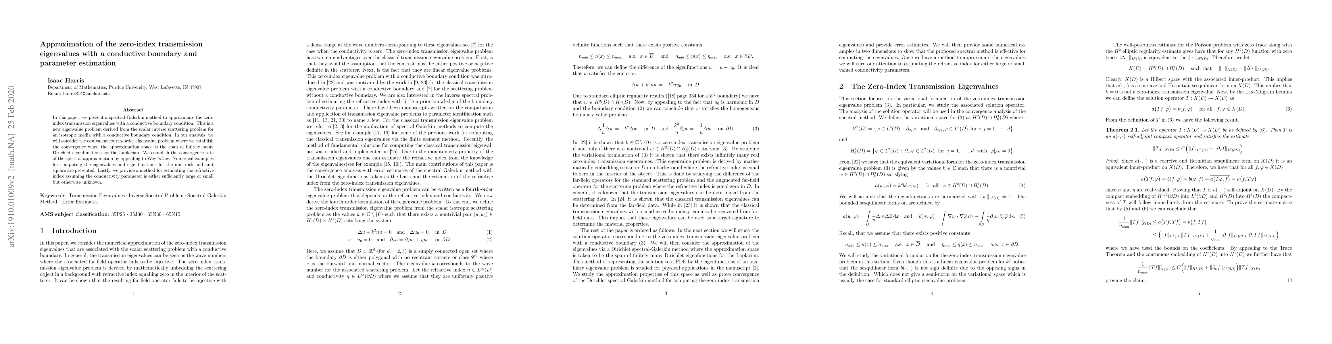 This paper introduces a Spectral-Galerkin Method to approximate zero-index transmission eigenvalues in conductive media, establishing convergence and convergence rates. It also presents numerical examples for unit disk and square, and a method for estimating the refractive index in unknown conductivity scenarios.