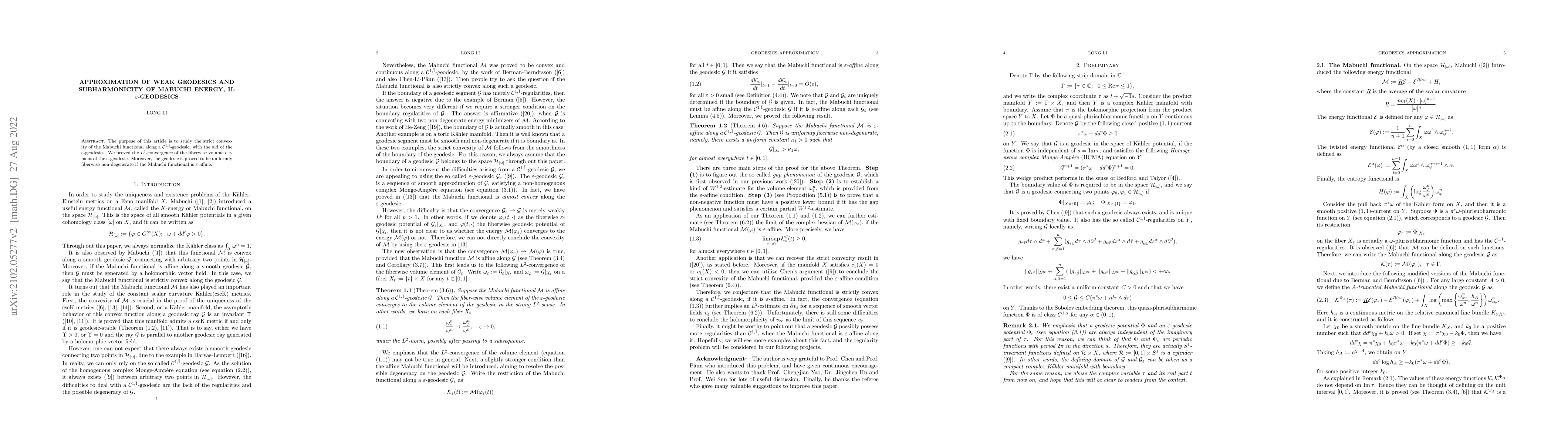 This paper investigates the strict convexity of the Mabuchi functional along $C^{1,1}$-geodesics using $\epsilon$-geodesics, proving $L^2$-convergence of the fiberwise volume element. It also demonstrates uniform fiberwise non-degeneracy of the geodesic when the Mabuchi functional is $\epsilon$-affine.