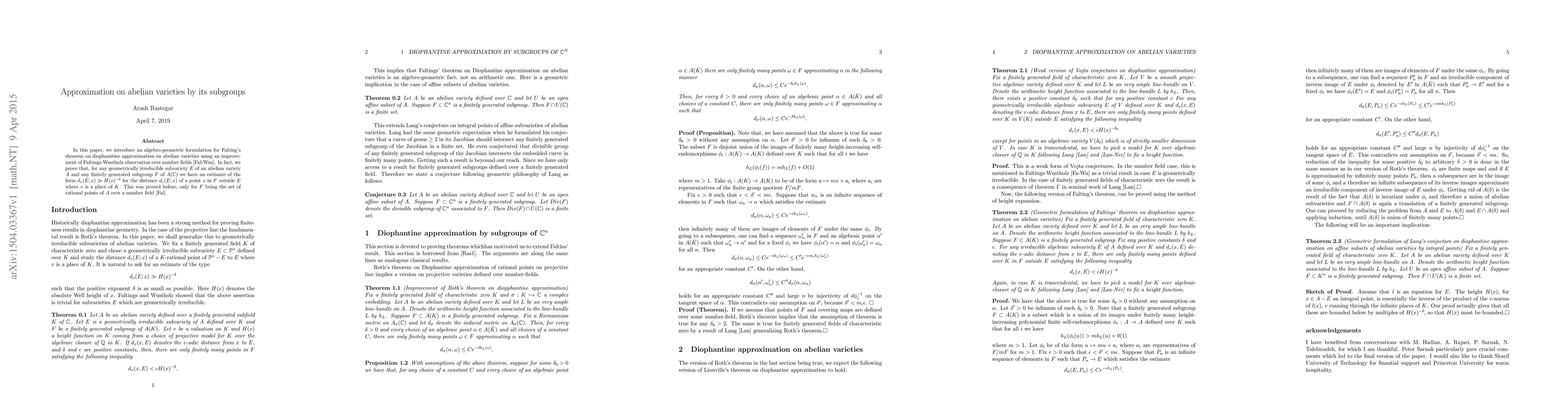 Researchers prove that geometrically irreducible sub-varieties of abelian varieties have an estimate for distance from points in finitely generated subgroups, improving earlier results only for rational points over number fields.