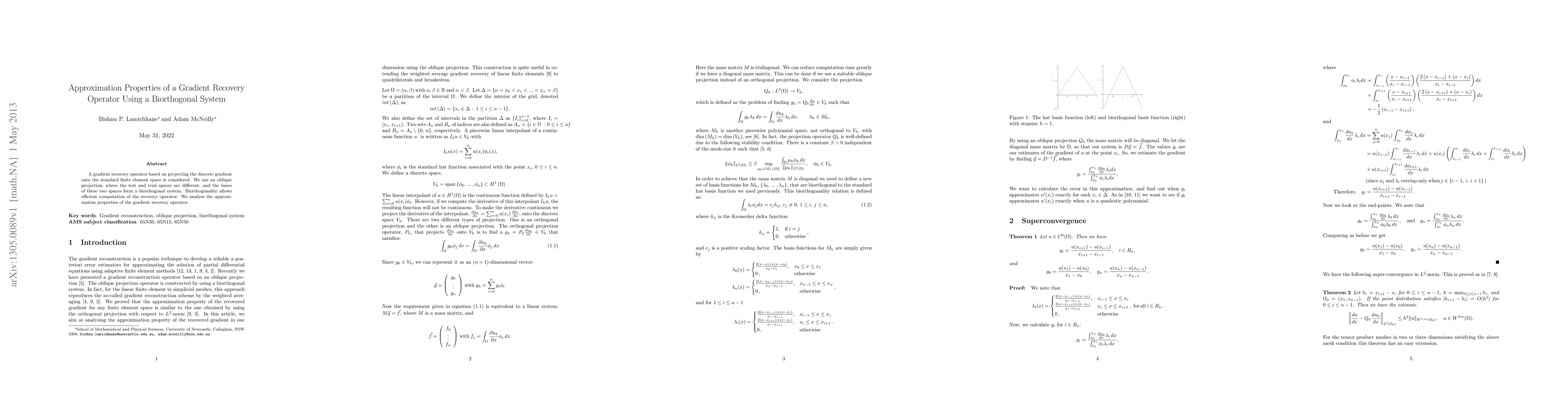 This paper explores a gradient recovery operator that projects discrete gradients onto a finite element space using an oblique projection with biorthogonal bases. The study focuses on the operator's approximation properties and demonstrates efficient computation facilitated by biorthogonality.