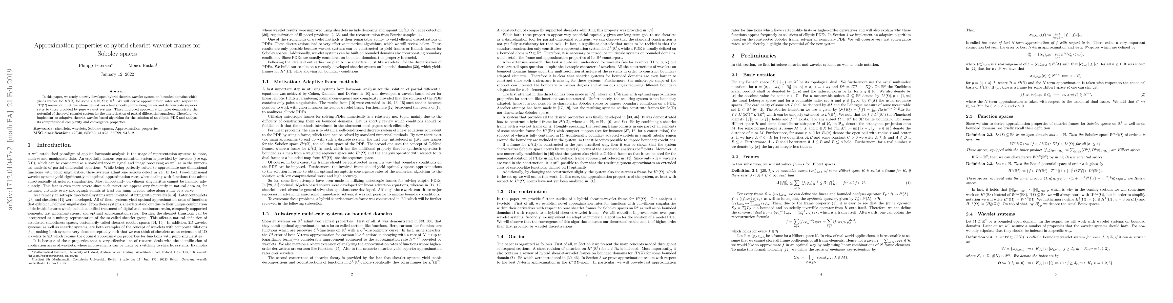 This paper investigates a hybrid shearlet-wavelet frame for approximating functions in Sobolev spaces $H^s(\Omega)$ on bounded domains, showing superior approximation rates compared to pure wavelet systems. It also presents an adaptive shearlet-based algorithm for solving elliptic PDEs, analyzing its computational efficiency and convergence properties.