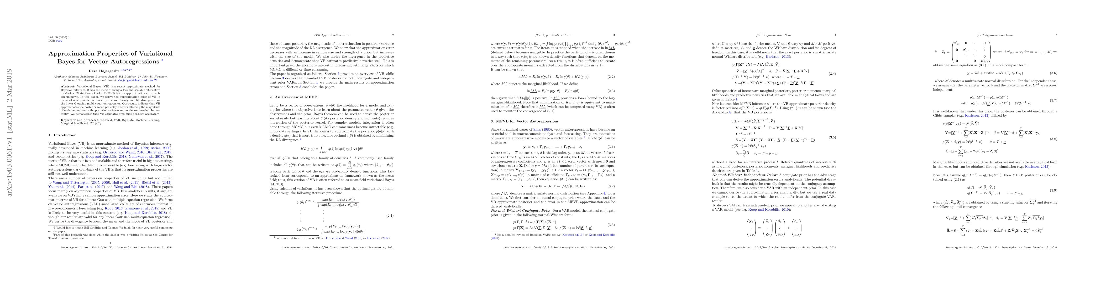 Variational Bayes (VB) is a recent approximate method for Bayesian inference. It has the merit of being a fast and scalable alternative to Markov Chain Monte Carlo (MCMC) but its approximation error is often unknown. In this paper, we derive the approximation error of VB in terms of mean, mode, variance, predictive density and KL divergence for the linear Gaussian multi-equation regression. Our results indicate that VB approximates the posterior mean perfectly. Factors affecting the magnitude of underestimation in posterior variance and mode are revealed. Importantly, We demonstrate that VB estimates predictive densities accurately.