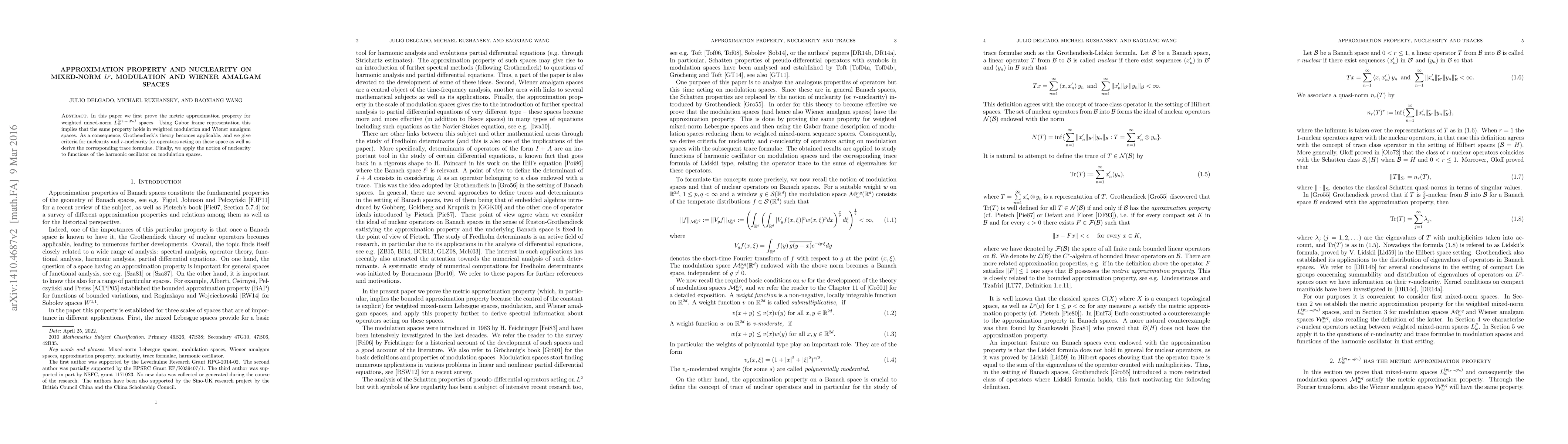 This paper establishes the metric approximation property for weighted mixed-norm $L_w^{(p_1,\dots ,p_n)}$ spaces, extending this to weighted modulation and Wiener amalgam spaces via Gabor frame representation. The study further applies Grothendieck's theory to derive criteria for nuclearity and $r$-nuclearity, along with trace formulae, and explores applications to functions of the harmonic oscillator on modulation spaces.