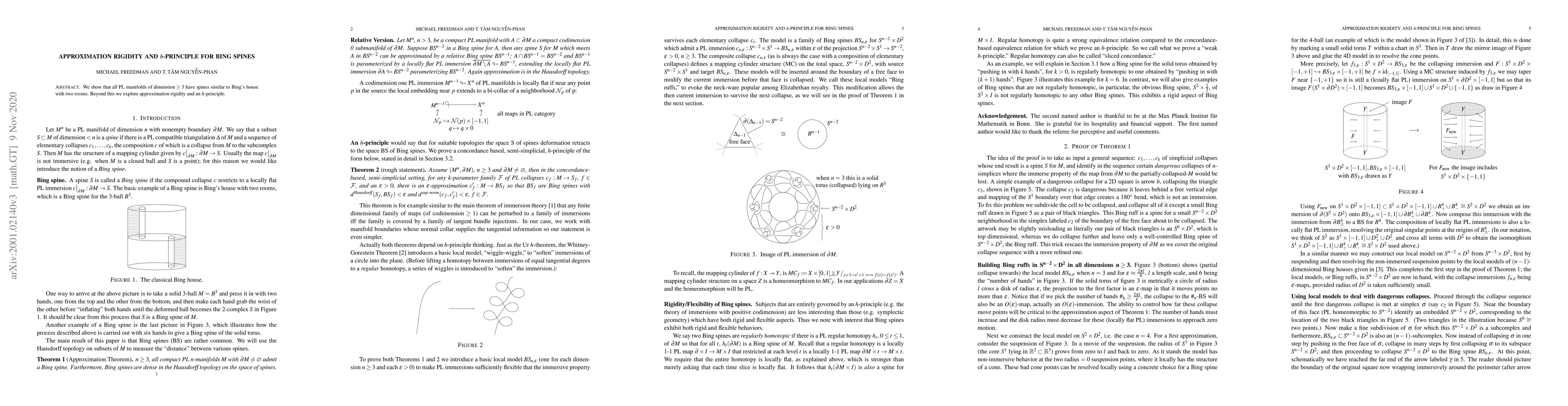 We show that all PL manifolds of dimension $\geq 3$ have spines similar to Bing's house with two rooms. Beyond this we explore approximation rigidity and an $h$-principle.