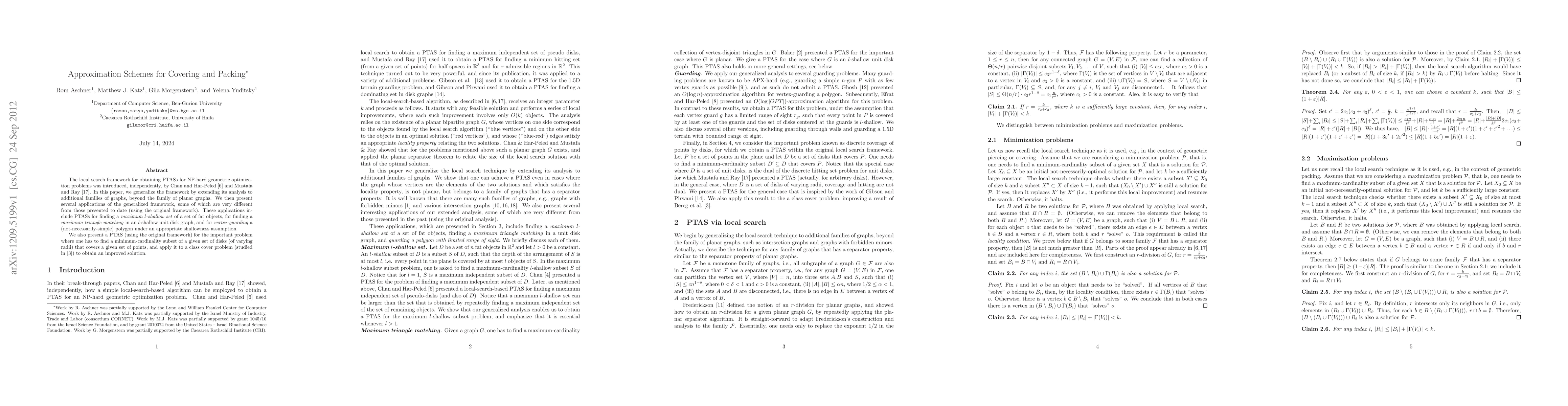 The local search framework for obtaining PTASs for NP-hard geometric optimization problems was introduced, independently, by Chan and Har-Peled (2009) and Mustafa and Ray (2010). In this paper, we generalize the framework by extending its analysis to additional families of graphs, beyond the family of planar graphs. We then present several applications of the generalized framework, some of which are very different from those presented to date (using the original framework). These applications include PTASs for finding a maximum l-shallow set of a set of fat objects, for finding a maximum triangle matching in an l-shallow unit disk graph, and for vertex-guarding a (not-necessarily-simple) polygon under an appropriate shallowness assumption. We also present a PTAS (using the original framework) for the important problem where one has to find a minimum-cardinality subset of a given set of disks (of varying radii) that covers a given set of points, and apply it to a class cover problem (studied in Bereg et al., 2012) to obtain an improved solution.