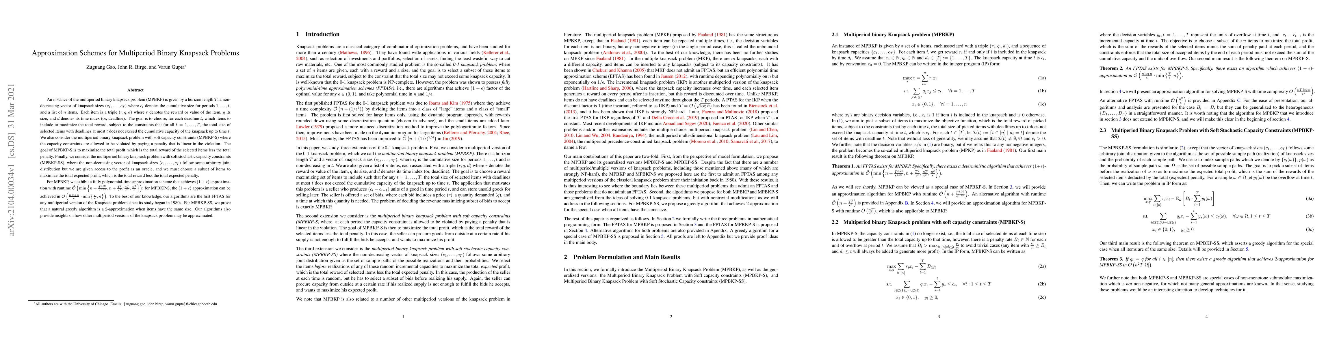 This paper presents approximation schemes for the multiperiod binary knapsack problem (MPBKP) and its variants with soft capacity constraints (MPBKP-S) and stochastic capacity constraints (MPBKP-SS). It provides a fully polynomial-time approximation scheme for MPBKP and efficient algorithms for MPBKP-S and a greedy 2-approximation for MPBKP-SS when items have uniform size.