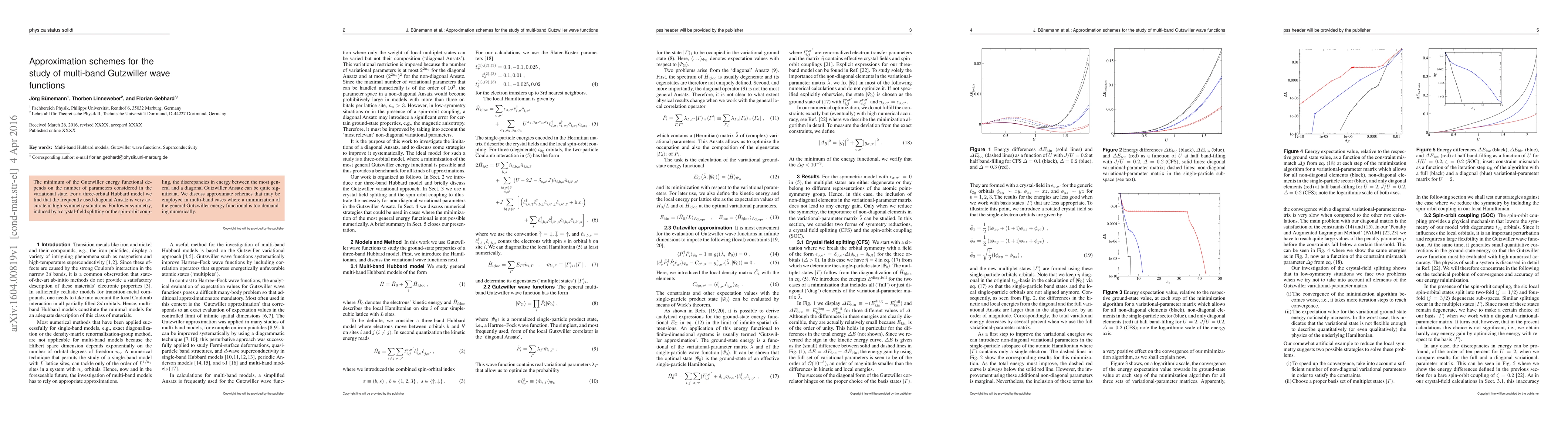 This paper explores approximation schemes for minimizing the Gutzwiller energy functional in multi-band systems, finding that a diagonal Ansatz is highly accurate in high-symmetry scenarios but less so in lower symmetry cases. It proposes alternative methods for computationally feasible approximations when minimizing the general Gutzwiller functional is impractical.