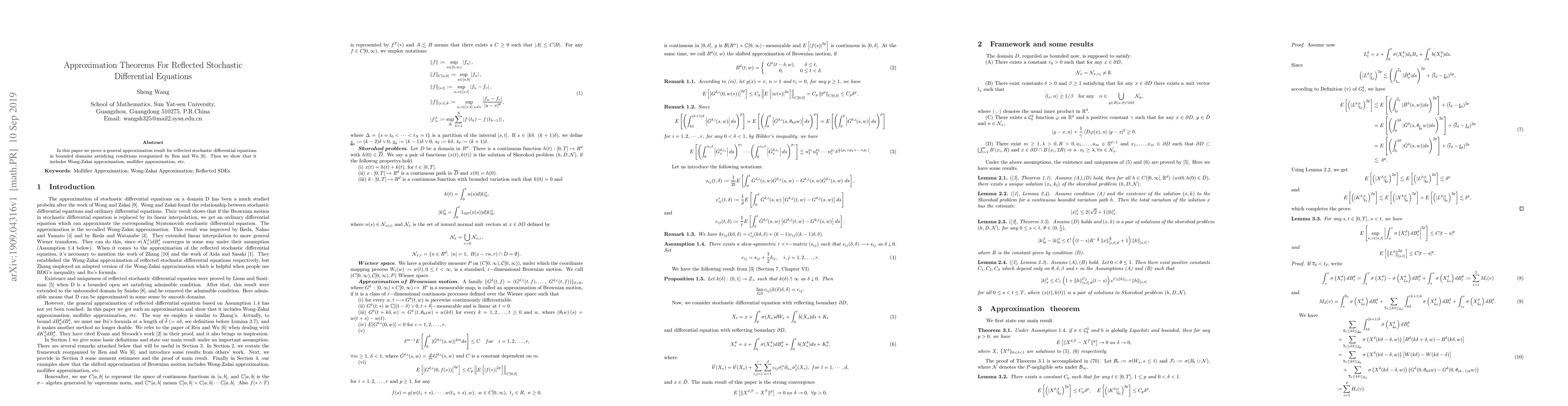 This paper establishes a general approximation result for reflected stochastic differential equations within bounded domains, fulfilling conditions specified by Ren and Wu. It demonstrates the inclusion of both Wong-Zakai and mollifier approximations within this framework.