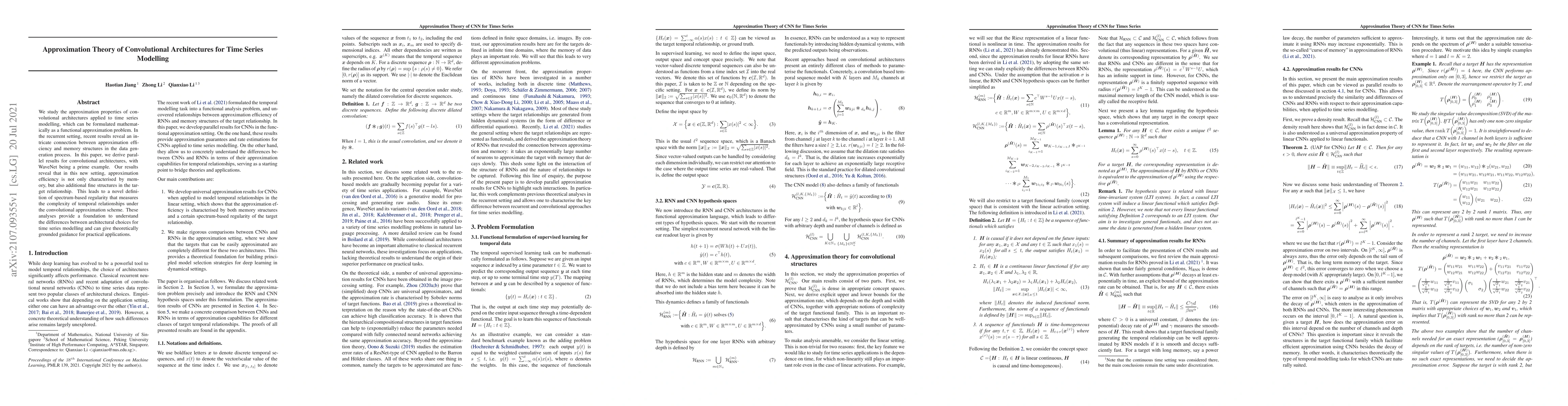 This paper explores how convolutional architectures for time series modeling approximate relationships in data, revealing new measures of complexity and guidance for practical applications.