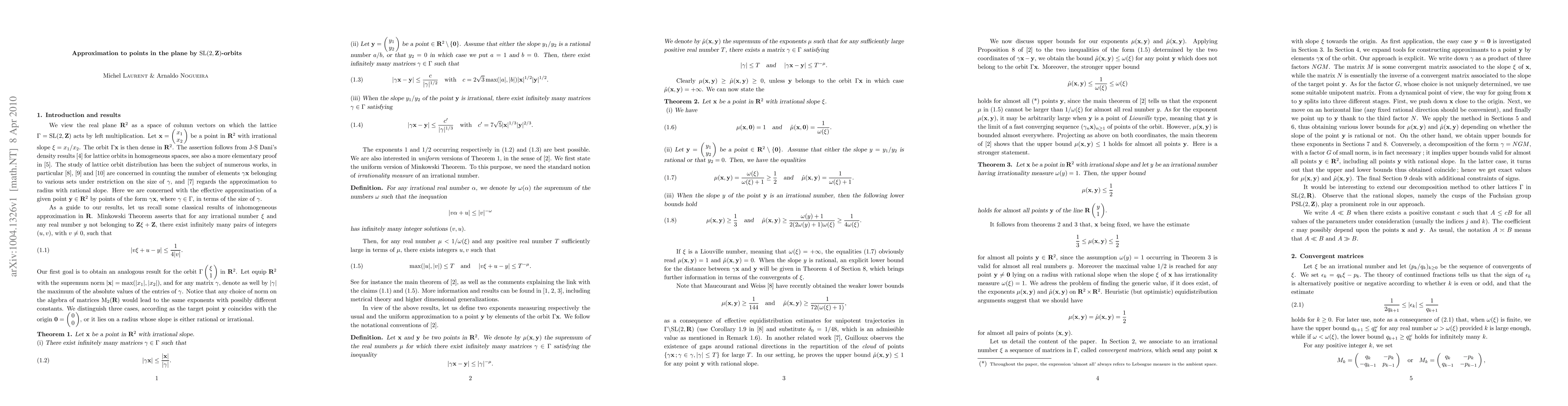 Let x be a point in R^2 with irrational slope and let \Gamma denote the lattice SL(2,Z) acting linearly on R^2. Then, the orbit \Gamma x is dense in R^2. We give efective results on the approximation of a point y in R^2 by points of the form \gamma x, where \gamma belongs to \Gamma, in terms of the size of \gamma.