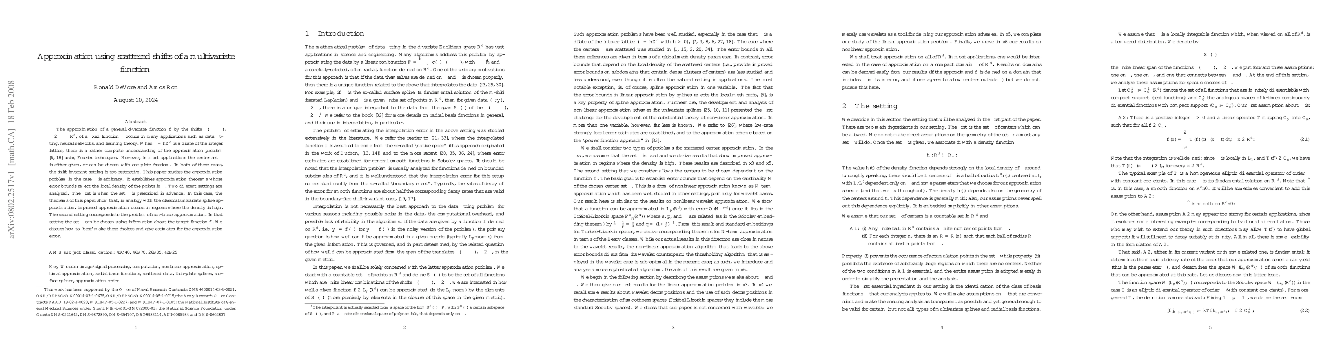 The approximation of a general $d$-variate function $f$ by the shifts $\phi(\cdot-\xi)$, $\xi\in\Xi\subset \Rd$, of a fixed function $\phi$ occurs in many applications such as data fitting, neural networks, and learning theory. When $\Xi=h\Z^d$ is a dilate of the integer lattice, there is a rather complete understanding of the approximation problem \cite{BDR,Johnson1} using Fourier techniques. However, in most applications the {\it center} set $\Xi$ is either given, or can be chosen with complete freedom. In both of these cases, the shift-invariant setting is too restrictive. This paper studies the approximation problem in the case $\Xi$ is arbitrary. It establishes approximation theorems whose error bounds reflect the local density of the points in $\Xi$. Two different settings are analyzed. The first is when the set $\Xi$ is prescribed in advance. In this case, the theorems of this paper show that, in analogy with the classical univariate spline approximation, improved approximation occurs in regions where the density is high. The second setting corresponds to the problem of non-linear approximation. In that setting the set $\Xi$ can be chosen using information about the target function $f$. We discuss how to `best' make these choices and give estimates for the approximation error.