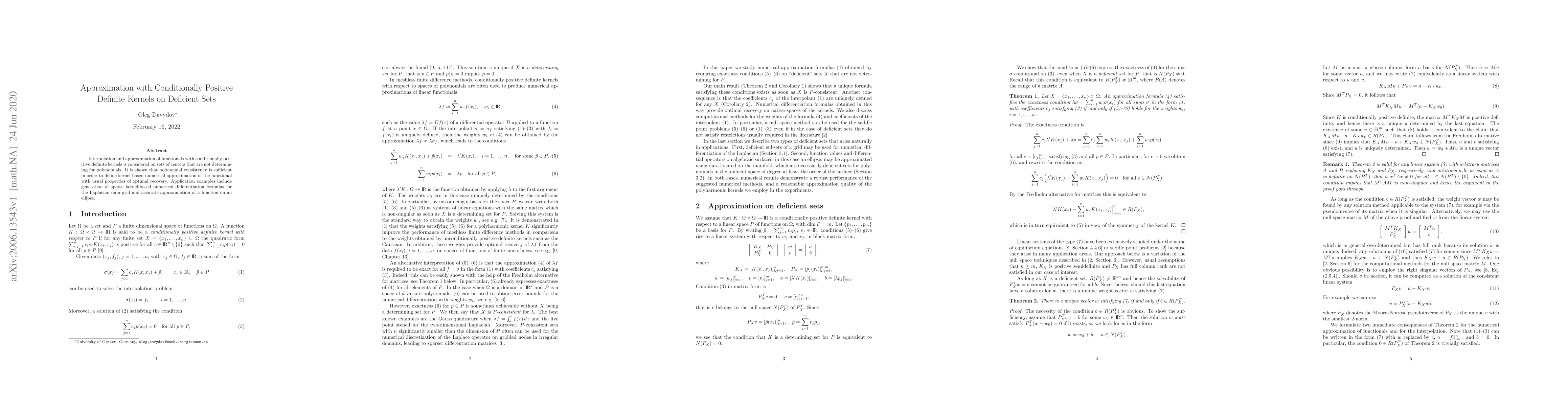 This paper explores the use of conditionally positive definite kernels for interpolation and approximation on non-determining sets, demonstrating that polynomial consistency suffices for optimal recovery properties. Practical applications include generating sparse numerical differentiation formulas and accurate function approximation on specific geometric shapes.