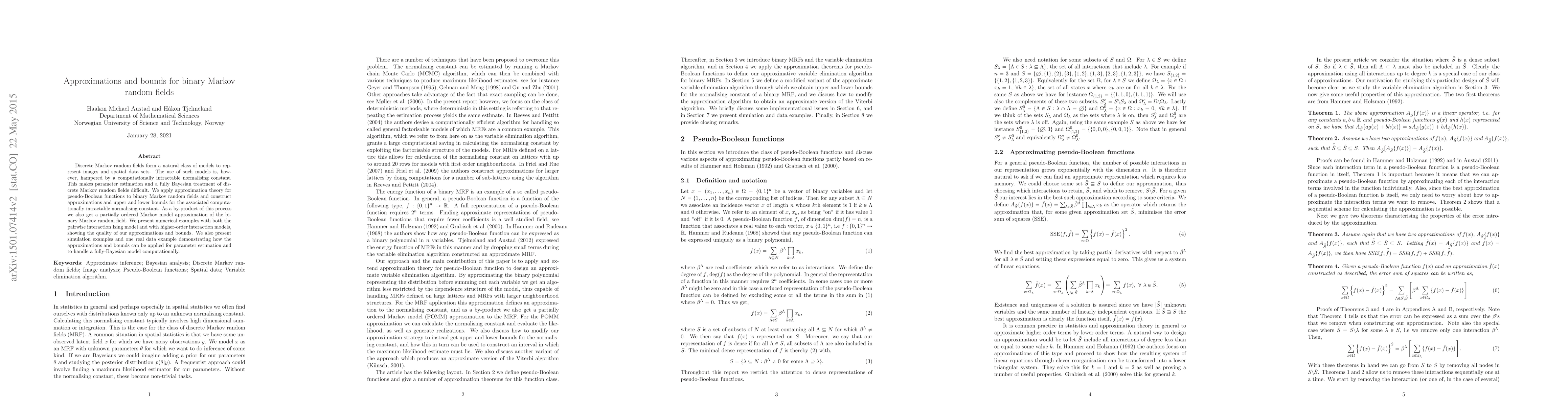 The paper introduces a novel approach to approximating pseudo-Boolean functions in binary Markov random fields, providing both upper and lower bounds for the normalising constant, which facilitates parameter estimation and Bayesian inference.