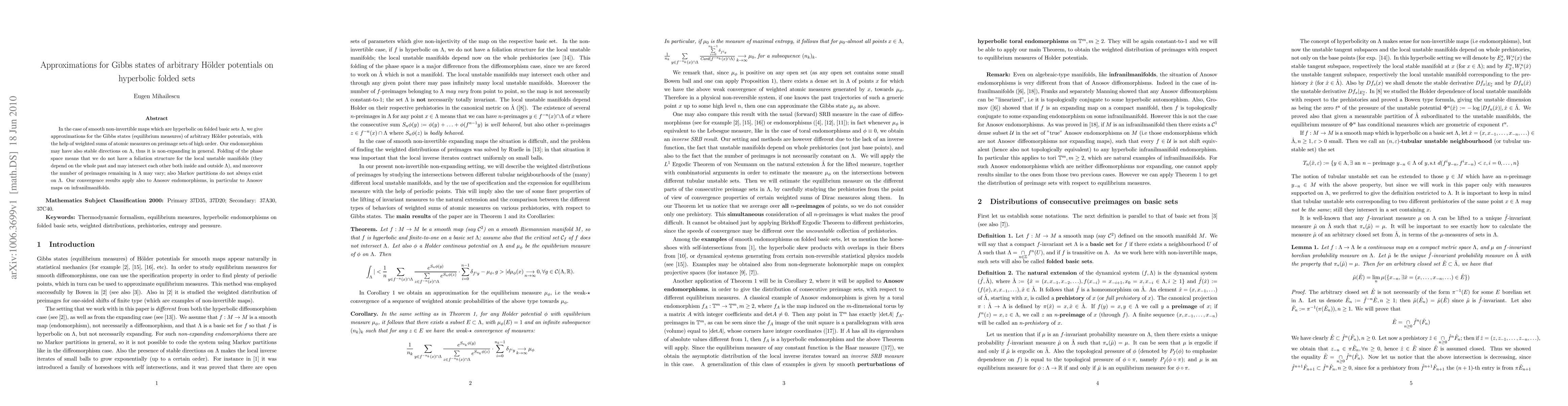 In the case of smooth non-invertible maps which are hyperbolic on folded basic sets $\Lambda$, we give approximations for the Gibbs states (equilibrium measures) of arbitrary H\"{o}lder potentials, with the help of weighted sums of atomic measures on preimage sets of high order. Our endomorphism may have also stable directions on $\Lambda$, thus it is non-expanding in general. Folding of the phase space means that we do not have a foliation structure for the local unstable manifolds (they depend on the whole past and may intersect each other both inside and outside $\Lambda$), and moreover the number of preimages remaining in $\Lambda$ may vary; also Markov partitions do not always exist on $\Lambda$. Our convergence results apply also to Anosov endomorphisms, in particular to Anosov maps on infranilmanifolds.