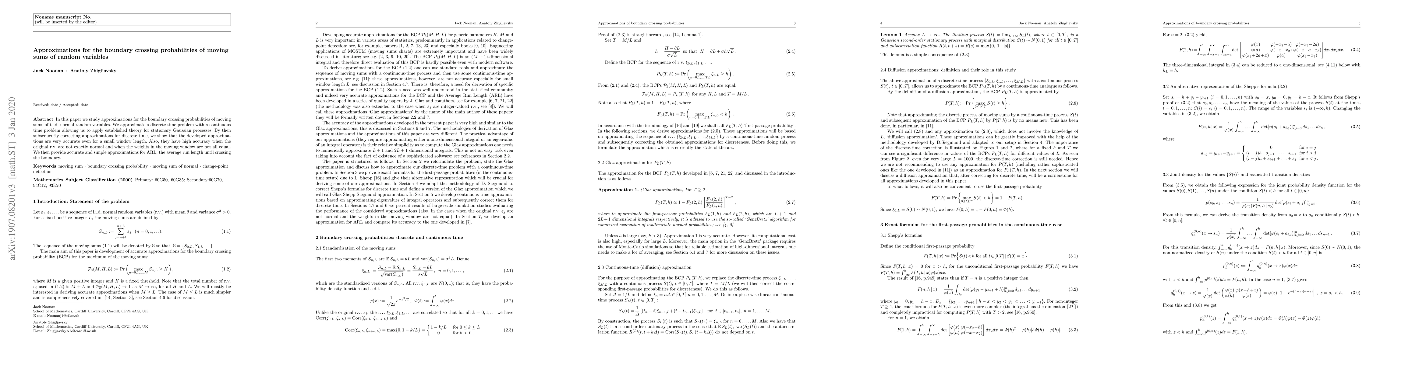 The authors developed new approximations for boundary crossing probabilities in moving sums, which are simpler and more accurate than existing methods.