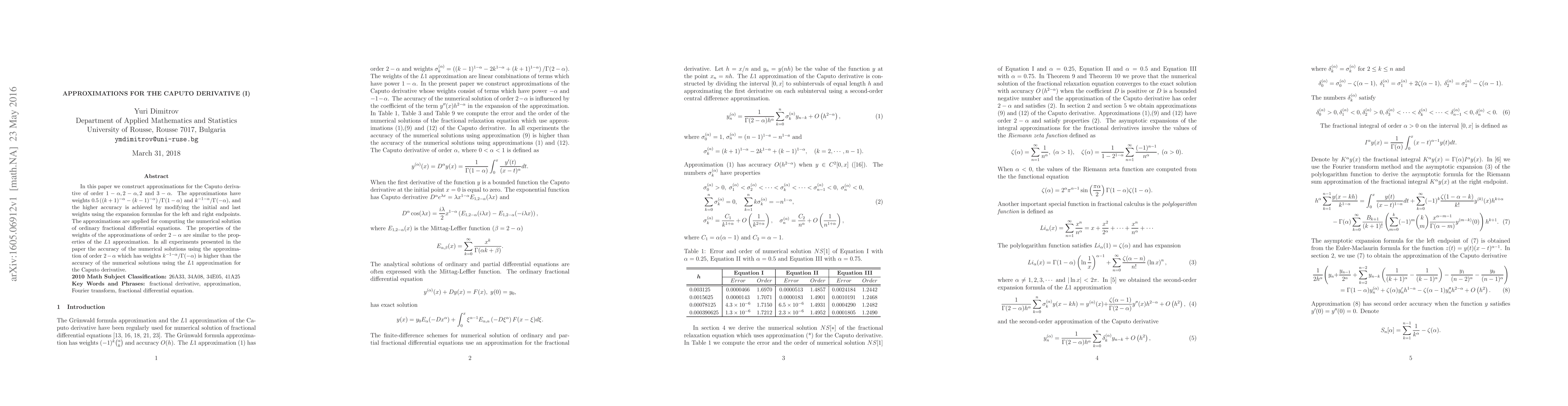 This paper constructs approximations for the Caputo derivative of various orders, achieving higher accuracy by modifying initial and last weights. The approximation of order $2-\alpha$ with specific weights outperforms $L1$ approximation in numerical solutions of fractional differential equations.