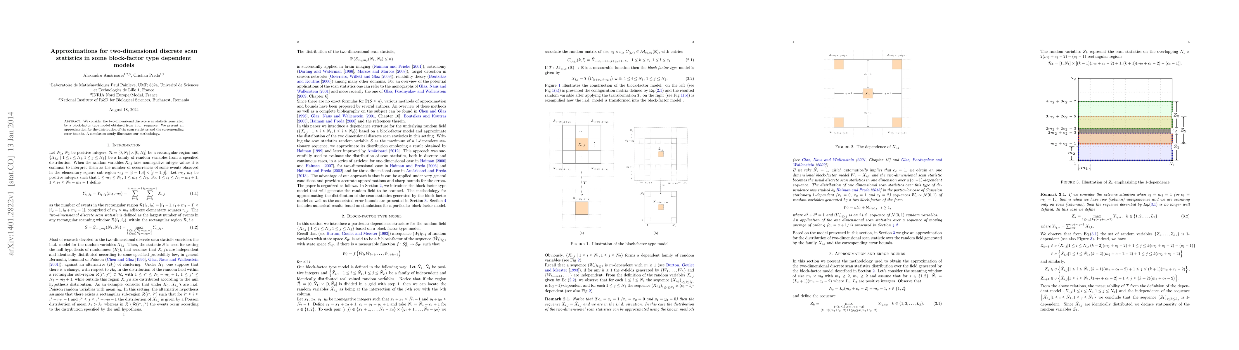 We consider the two-dimensional discrete scan statistic generated by a block-factor type model obtained from i.i.d. sequence. We present an approximation for the distribution of the scan statistics and the corresponding error bounds. A simulation study illustrates our methodology.