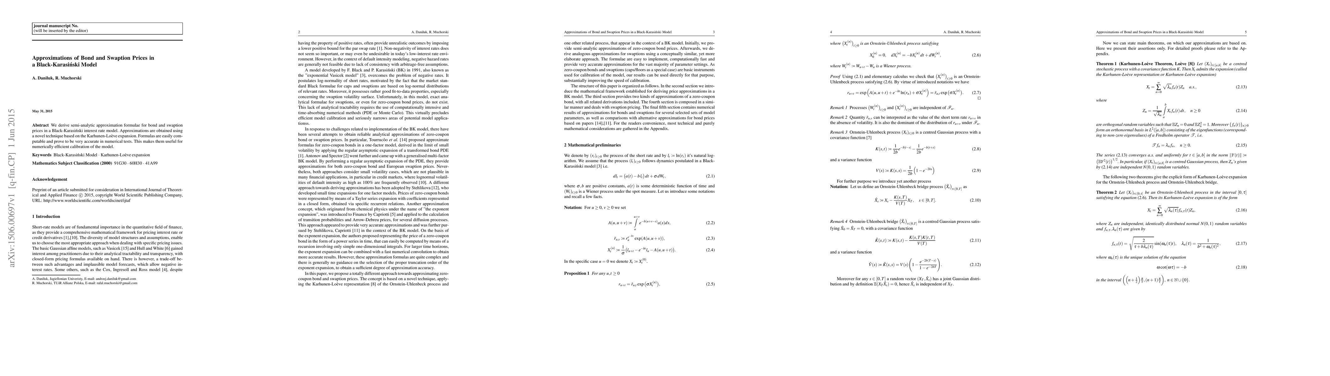 This research presents semi-analytic approximation formulae for bond and swaption prices in a Black-Karasi'nski interest rate model, derived using a novel Karhunen-Loève expansion technique. These easily computable and highly accurate formulas are beneficial for efficient numerical calibration of the model.