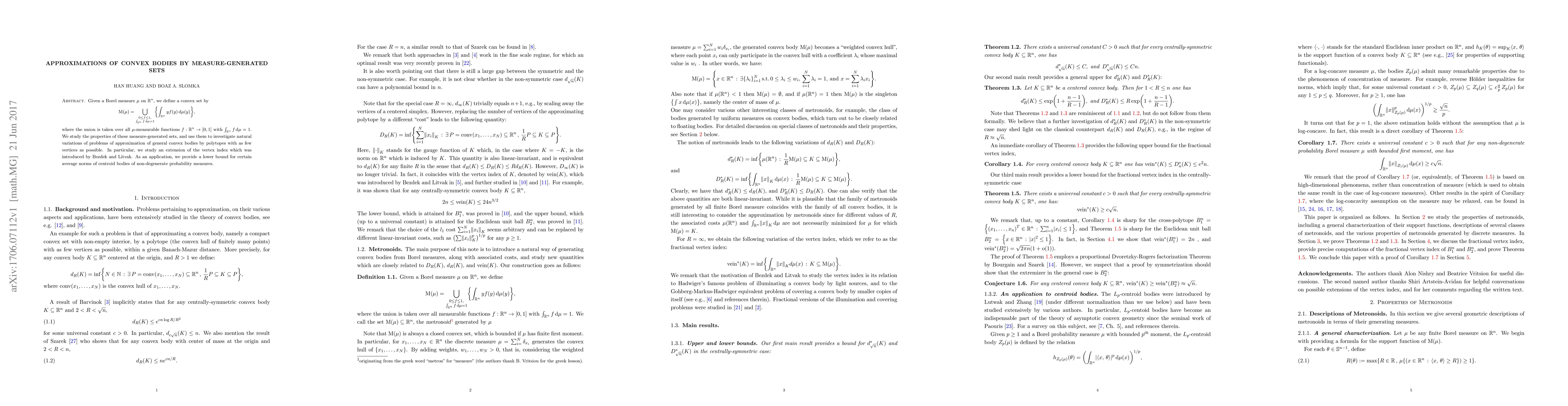 This paper explores convex sets defined by Borel measures and investigates their properties, focusing on approximating general convex bodies using measure-generated sets. It extends the concept of vertex index to provide a lower bound for average norms of centroid bodies of non-degenerate probability measures.