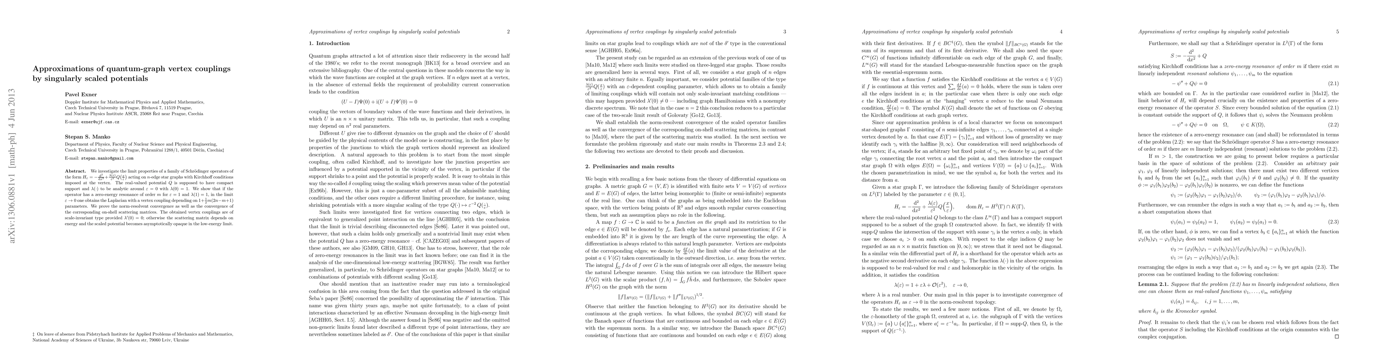 A study on quantum-graph vertex couplings approximated by singularly scaled potentials shows that in the limit of small epsilon, the operator reduces to a Laplacian with a specific number of parameters depending on the order of the zero-energy resonance, and the scattering matrix converges norm-resolvently.