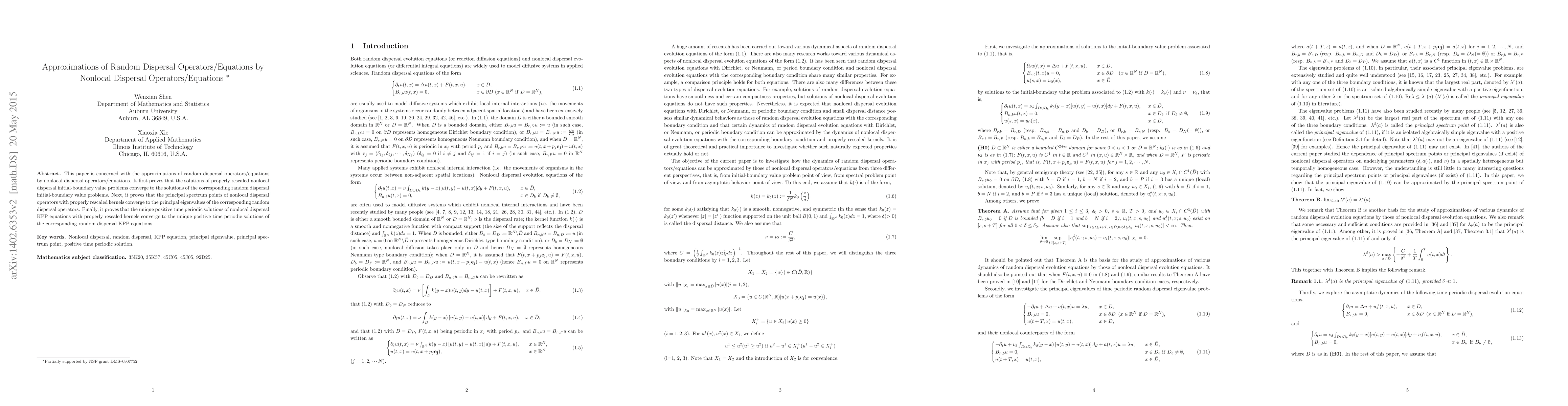 This paper demonstrates that properly rescaled nonlocal dispersal operators/equations can approximate random dispersal counterparts, showing convergence in solutions, principal spectrum points, and unique positive time periodic solutions.