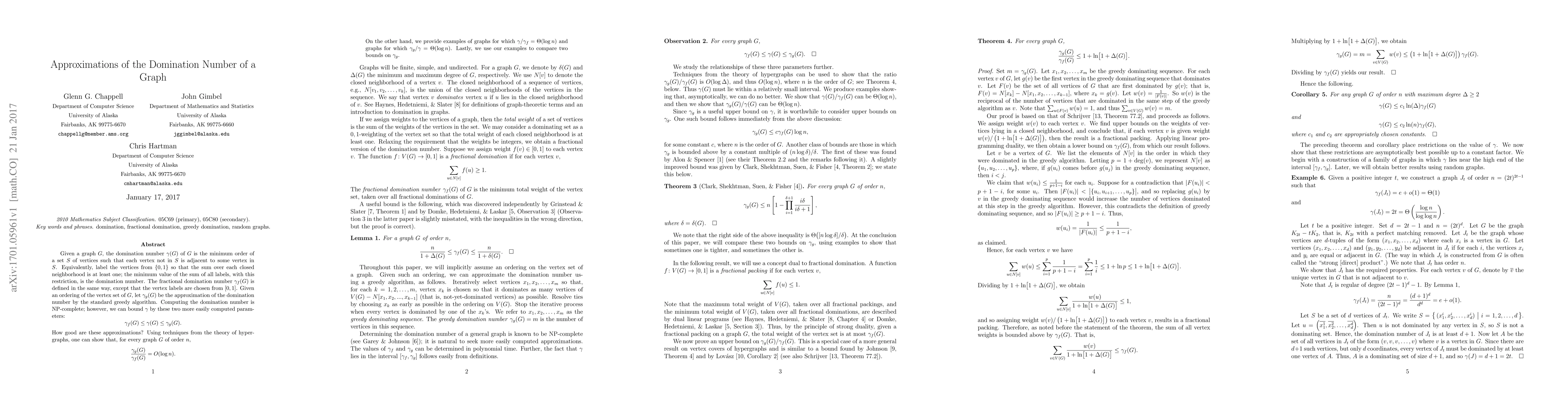The paper explores approximations of the domination number in graphs, showing that the fractional domination number is a tighter bound than the greedy algorithm but with a trade-off in computational complexity.