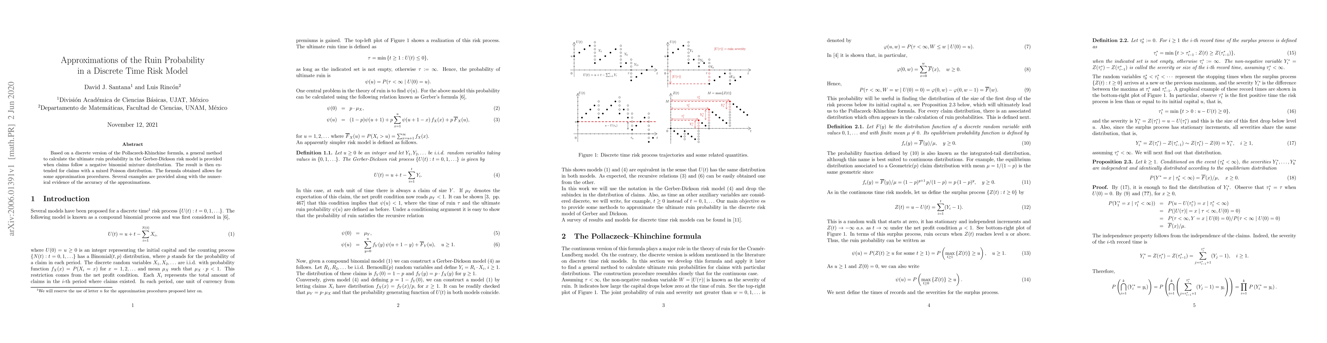 Based on a discrete version of the Pollaczeck-Khinchine formula, a general method to calculate the ultimate ruin probability in the Gerber-Dickson risk model is provided when claims follow a negative binomial mixture distribution. The result is then extended for claims with a mixed Poisson distribution. The formula obtained allows for some approximation procedures. Several examples are provided along with the numerical evidence of the accuracy of the approximations.