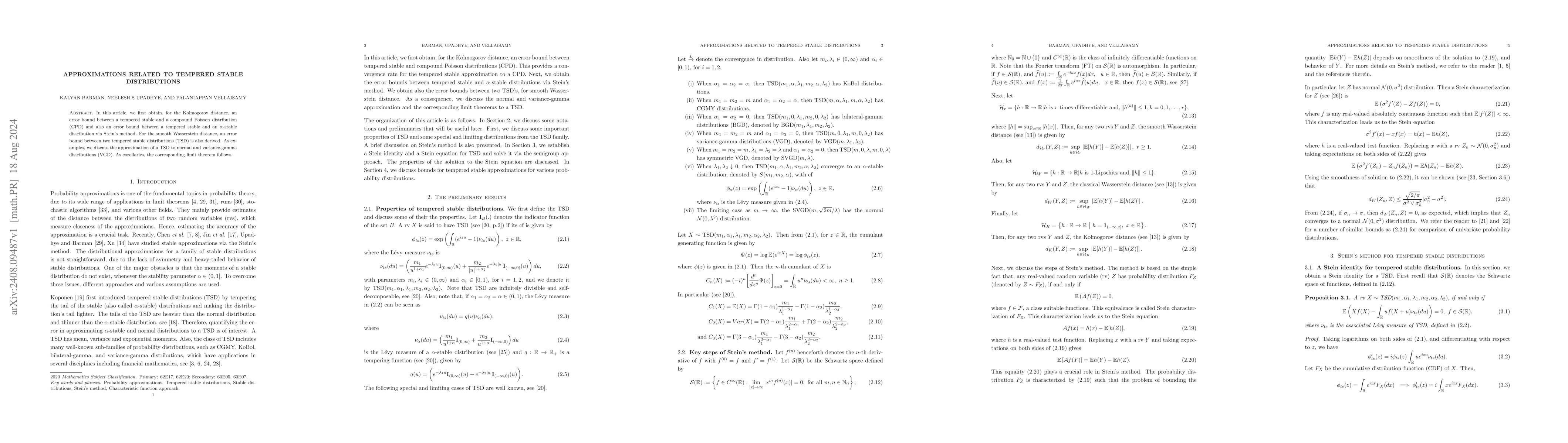 This paper provides error bounds using the Kolmogorov distance and the smooth Wasserstein distance for approximations between tempered stable distributions and compound Poisson or alpha stable distributions, applying the Stein method. It also explores specific approximations to normal and variance gamma distributions and deduces corresponding limit theorems.