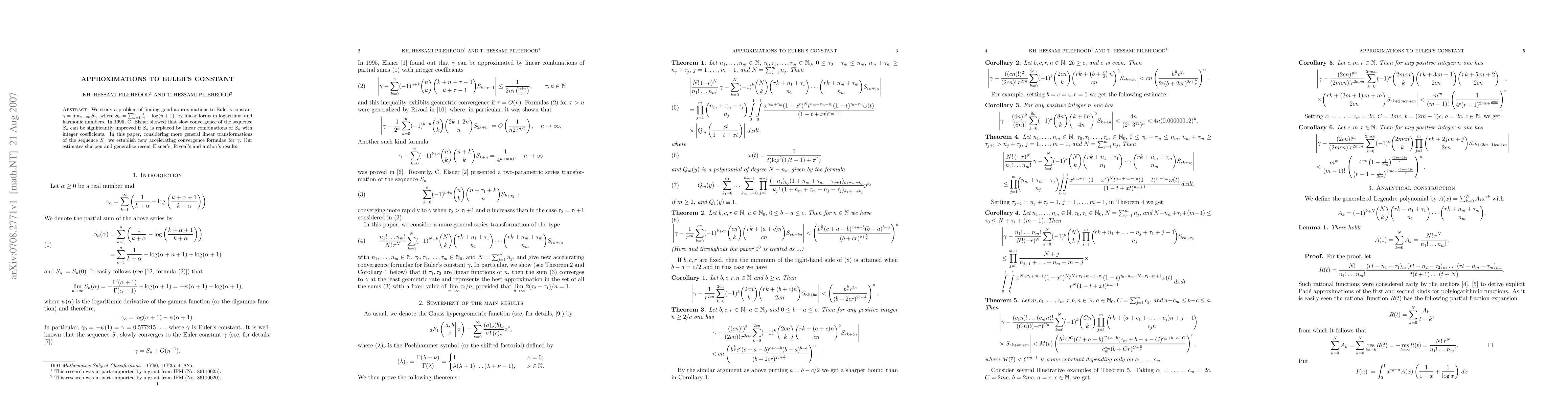 The paper studies approximations to Euler's constant (γ) using linear forms in logarithms and harmonic numbers, improving upon previous results by C. Elsner, Rivoal, and the authors.