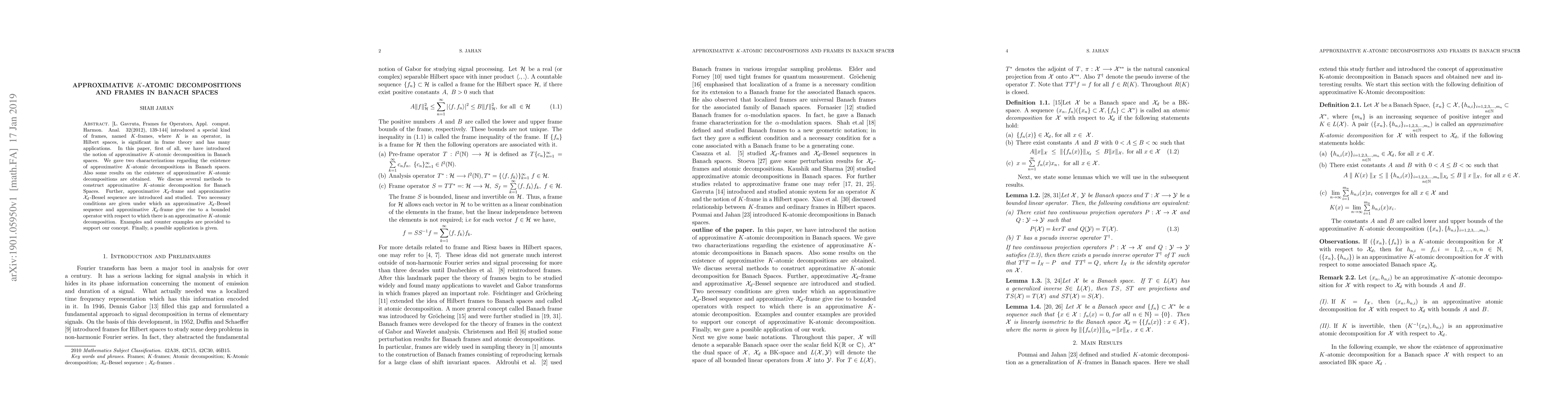 This paper introduces the concept of approximative $K$-atomic decompositions in Banach spaces, providing two characterizations for their existence and discussing construction methods. It also explores approximative $\mathcal{X}_d$-frames and $\mathcal{X}_d$-Bessel sequences, offering necessary conditions for their bounded operator applications and including examples and counterexamples.