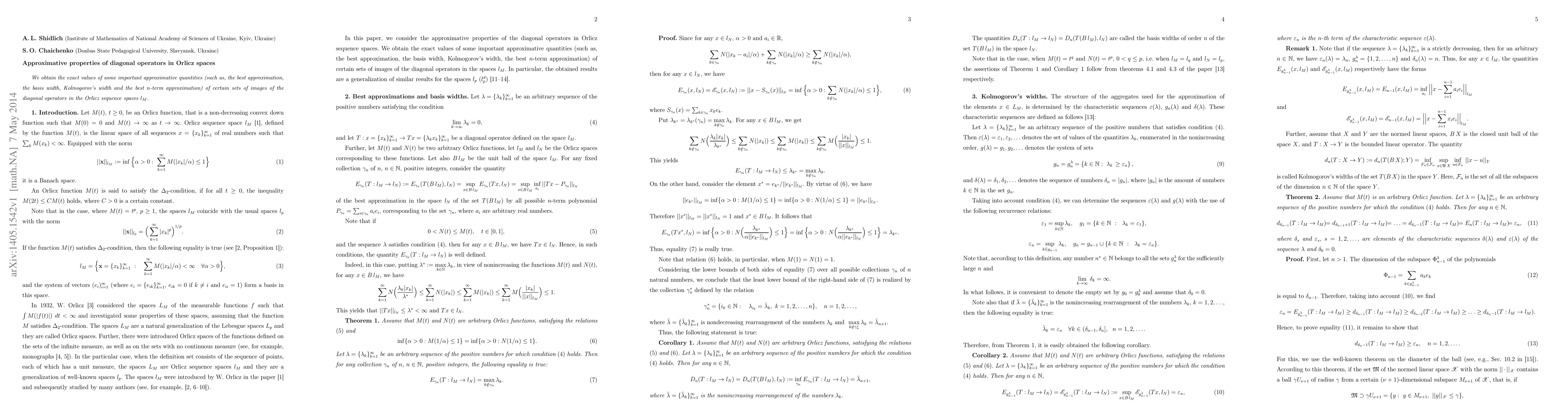 This paper determines precise values for key approximative measures of diagonal operators in Orlicz sequence spaces $l_M$, including best approximation, basis width, Kolmogorov's width, and best $n$-term approximation. These findings enhance the understanding of the approximative properties of such operators.
