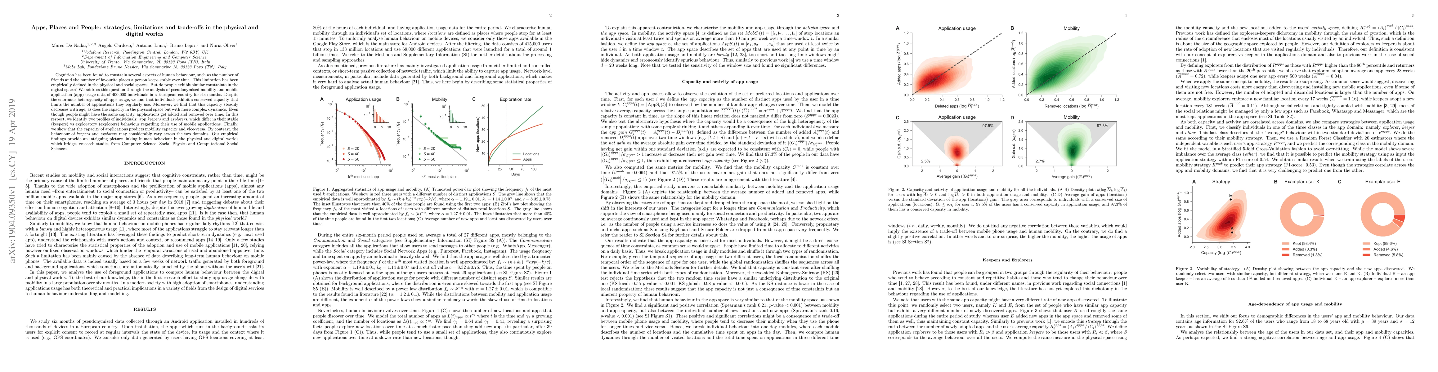 A study analyzed 400,000 individuals' app usage data to find that people have a limited capacity for regular app use, which decreases with age, similar to physical space constraints. The study also found two profiles of users: 'app keepers' who use apps regularly and 'explorers' who try new apps more often.